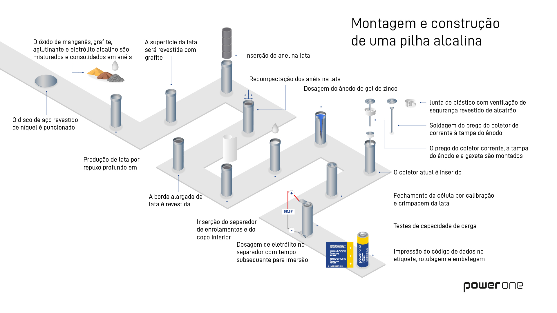 No momento em que as baterias acabam nas prateleiras e, em seguida, em nossos cestos de compras, elas já tiveram uma longa jornada. Embora as baterias sejam pequenas, muitas etapas são necessárias para deixá-las prontas para venda.
